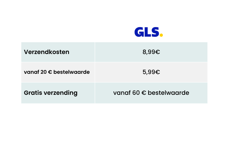 Zoals je waarschijnlijk al weet, zijn de standaard verzendkosten bij een bestelling vanaf €60 gratis. Onder dat bedrag, zijn de verzendkosten €5,99.